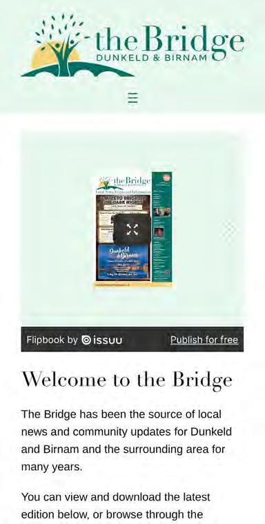 The Bridge Newsletter is produced and distributed by Dunkeld and Birnam News CICa Community Interest Company Registered in Scotland SC813544
