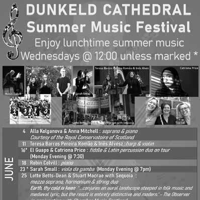 Continues until 28th August - L Dunkeld Cathedral Art Exhibition Duchess Anne Continues until 27th July - Exhibition Reclaiming Shadows Birnam Arts Open Daily