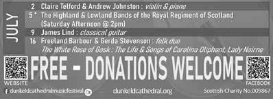 29 July -28th August - Dunkeld Cathedral Art Exhibitionwww.dunkekdartexhibition.com. Open Daily 10-4 and. 12-4 on Sundays