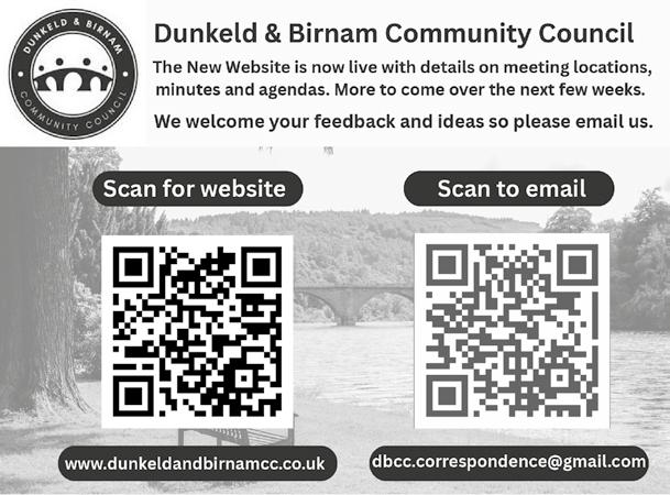 Please e-mail your article to Sally at: editor@dunkeldandbirnamnews.co.uk or post to: The Bridge Dunkeld & Birnam Community Co-Working Space Lagmhor, Dunkeld PH8 0AD