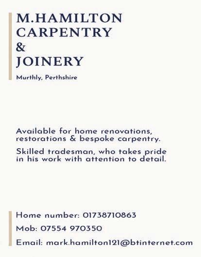 This edition showcases just some of the fantastic work going on across our community — from the long-awaited: Station platform upgrades [see p.7], to the energy and creativity of the Dunkeld & Birnam Men’s Shed [see p.15], and the progress on our Local Place Plan [see p.7]. With volunteers, pupils, planners and contractors all playing a part, these stories highlight the hands-on e orts making our area more accessible, more vibrant, and more connected.
