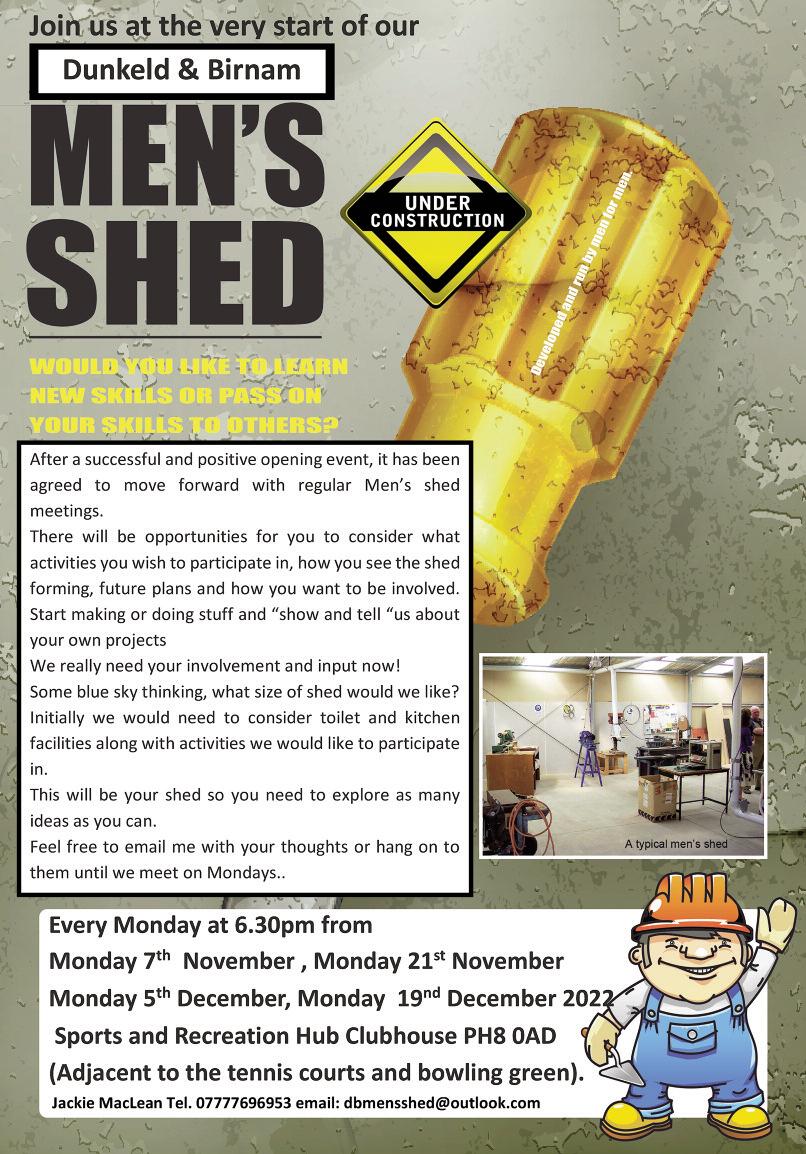 Dunkeld and Birnam Men’s Shed 07777696953 Mr Jackie MacLean