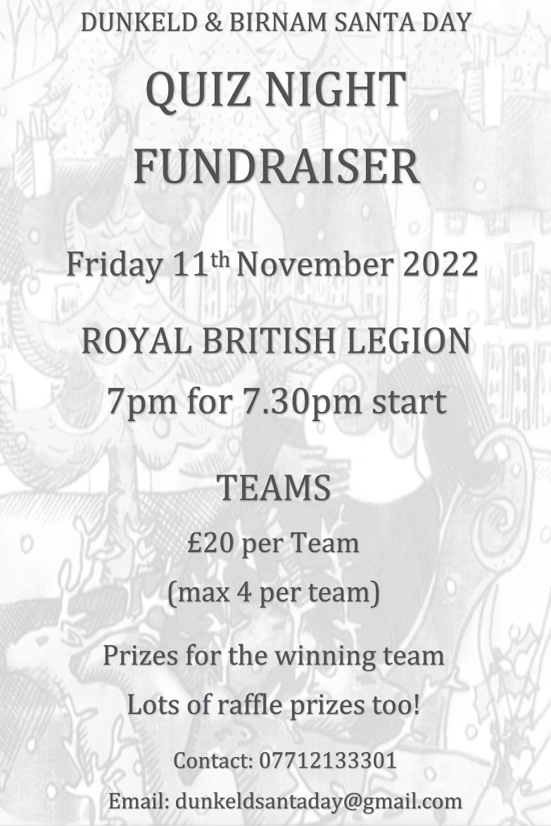 How many fingers and toes do I need to keep crossed as I suggest that it seems that possibly just maybe we may get a ‘normal’ Christmas this year Instead of exchanging Christmas presents in socially distanced ways in car parks might we be able to gather around the tree this year? Might we be able to bring together more than 8 family members or friends at one gathering? And, maybe, Santa might come to Dunkeld and Birnam on the 10th of December To help the Clausometer of Christmas Spirit meter climb to sufficient height for his sleigh to fly all the way here please support the Santa Day Christmas Fundraiser on the 11th November in the Royal British Legion see page 9