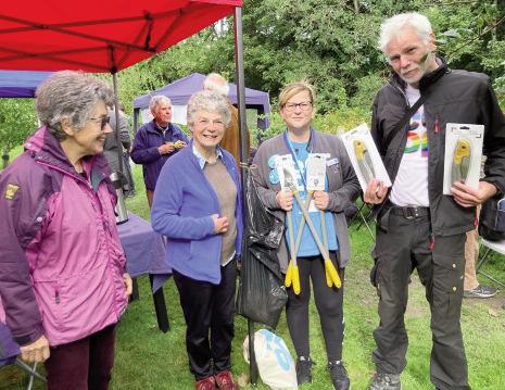The good news is that once more we had a really enjoyable time at Big Apple Day on 23 September The first focus of activity was around the apple juicer and press and at the picnic table where people could sample the juice and take away a jar for home consumption We also had some very active picking teams, the main apples being the Bramley cookers and the curiously named Bloody Ploughman eaters The home-made cakes at the tea stall were even more excellent this year - thank you to all those who gave us donations, in return for the refreshments, which help with our running expenses A thankyou also to Dunkeld Coop who presented us with useful loppers and pruning saws The activities tent for small folk was also especially well equipped this year Those children who went on the bug hunt were rewarded with Red Admiral butterflies enjoying the rotting fruit On a more serious note the team from Dunkeld Station were canvassing for ideas And the icing on the cake was gentle music on the small pipes from an itinerant Stuart Letford There is such a lovely atmosphere at this event