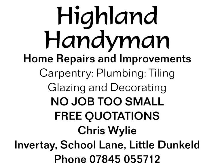 You’ll notice on the front page that we are trying a new method of delivering The Bridge – seeing if we can find enough volunteers to take delivery of a small bundle of Bridge’s (e g , maybe 12- 20) and then deliver these to the households close to you The idea is that it might help build our sense of local community as well as ensure the lesser-known doors, known only to our experienced posties and neighbours, get their copy If you can help, please e-mail Beth & Mel on deliveries@dunkeldandbirnamnews co uk letting them know which group of houses you would be prepared to deliver to We’ll trial the system until Christmas backed