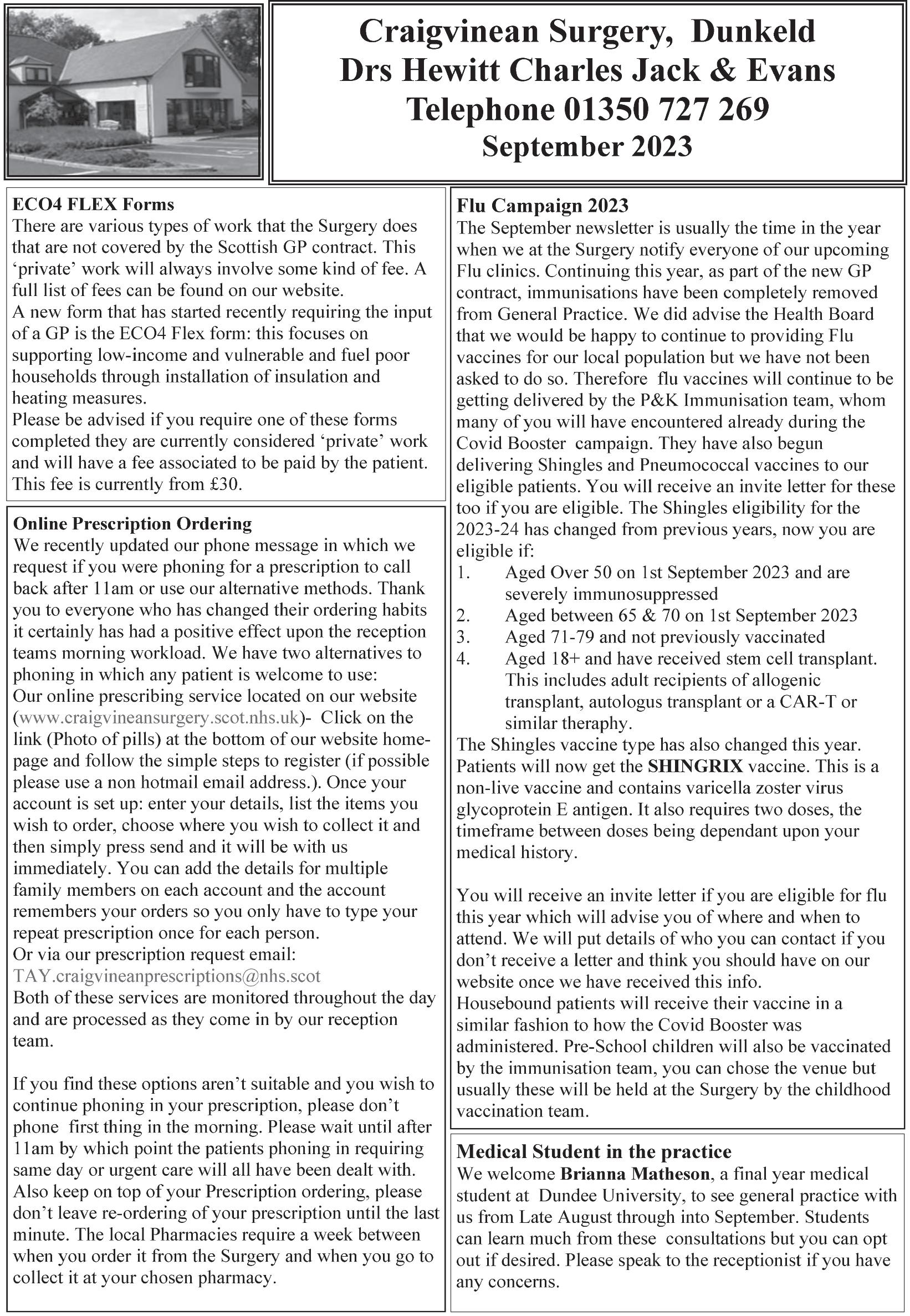 The group acts as an information exchange between existing local groups, but members have also started a number of new initiatives to improve our citizens’ quality of life So we now have a Social Prescribing Service which can direct people to a variety of local groups offering companionship and involvement in a range of different activities Anyone interested should contact Jeni Guthrie at jguthrie@pkc gov uk or through Craigvinean Surgery