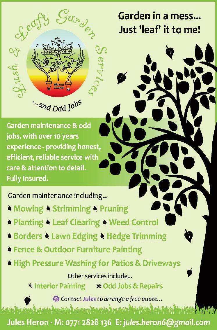 Grass cutting, Hedge cutting, Strimming, Leaf collection, Weeding/dig over, Edging, Gravel footpaths, Aerating, General tidy-up. All General Garden Maintenance work carried out to the highest quality on every job, everyday