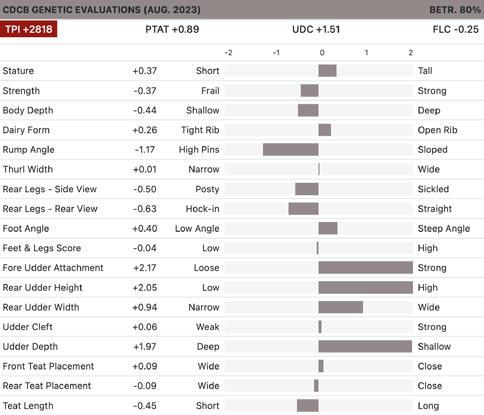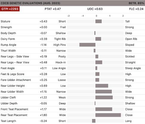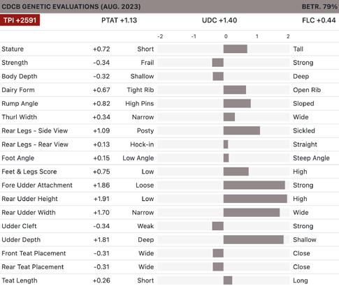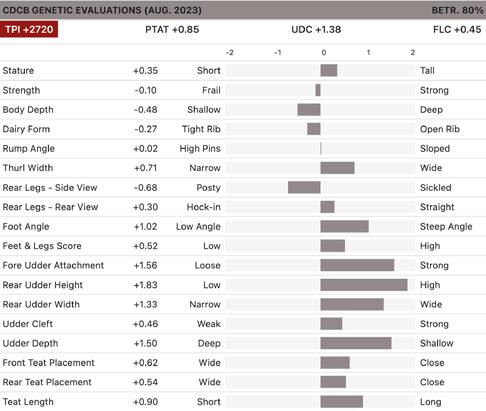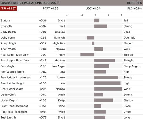 dtr proven PTAT bull in the breed >2.5 UDC, + Milk, Sloped Rumps & >-0.1 Fertility Index