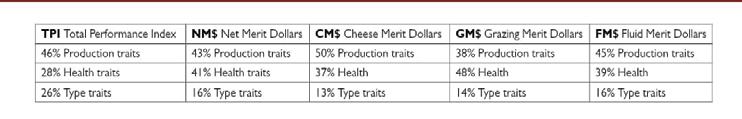 Health: health sub-index at 8% highlights SCC 2.6%, TB 3%, Mastitis 1.7% and Lameness at 0.8%. This index aims to breed a more durable animal, less prone to illness and less likely to be culled from the herd due to issues such as SCC and Lameness. The health of your cow ties in with fertility amd has a impact of your carbon index or your herd.