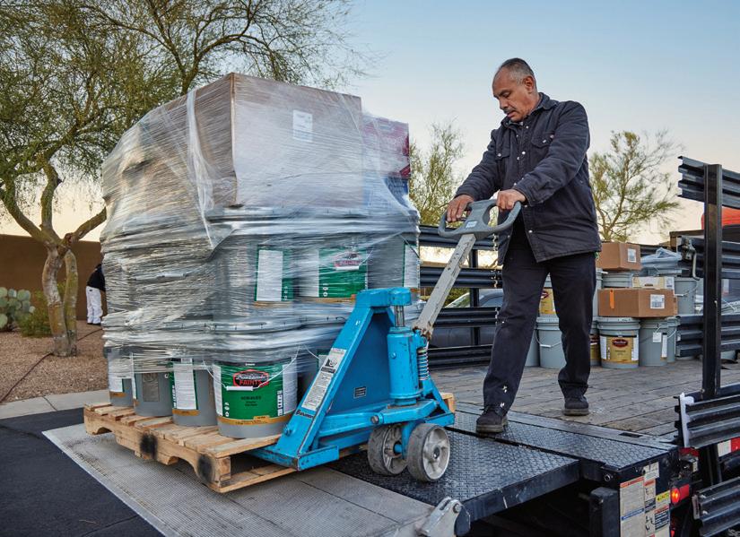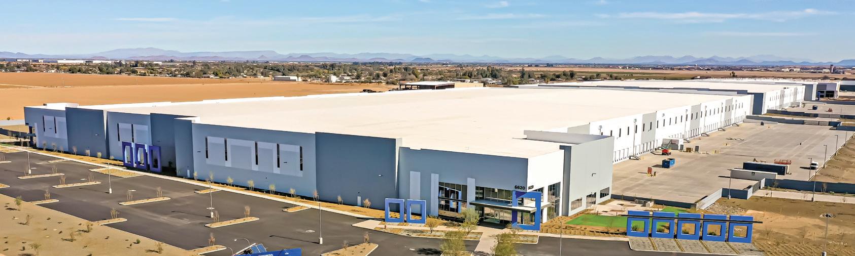 Fue la reputación de calidad y confiabilidad de A.L.D. Painting lo que los llevó a esta nueva construcción especulativa, dos edificios masivos de almacenes cross-dock prefabricados cerca de Litchfield Park, AZ, que se asientan en 72 acres y suman 1,192,719 pies cuadrados con paredes de 53'+. “Este proyecto de interiores/exteriores era muy solicitado”, dijo Andy. Su representante de Dunn-Edwards realizó una comparación de volúmenes de sólidos y mostró las ventajas de utilizar pintura exterior ACRI-HUES ®, lo que ayudó a cerrar el trato. Entre los retos se encontraban los muros altos y el hecho de que los propietarios del proyecto trajeran a posibles compradores al lugar mientras se construían y pintaban los edificios. “Un posible comprador quería ver su color característico en los cuadriláteros decorativos, por lo que necesitábamos pintarlos de inmediato, pero primero teníamos que hacer una igualación de color personalizada. Nuestro representante de Dunn-Edwards visitó un sitio existente e igualó rápidamente el color, y luego nos proporcionó disposiciones para la adquisición, lo que nos permitió repintar los cuadriláteros con su color a tiempo. Por lo tanto, Dunn-Edwards fue fundamental para nuestra cadena de suministro. Con un proyecto de esta envergadura, era imprescindible disponer continuamente de pintura en el sitio, y en ningún momento estuvimos esperando el producto”, dijo Andy. (888) DE PAINT (337-2468) | dunnedwards.com