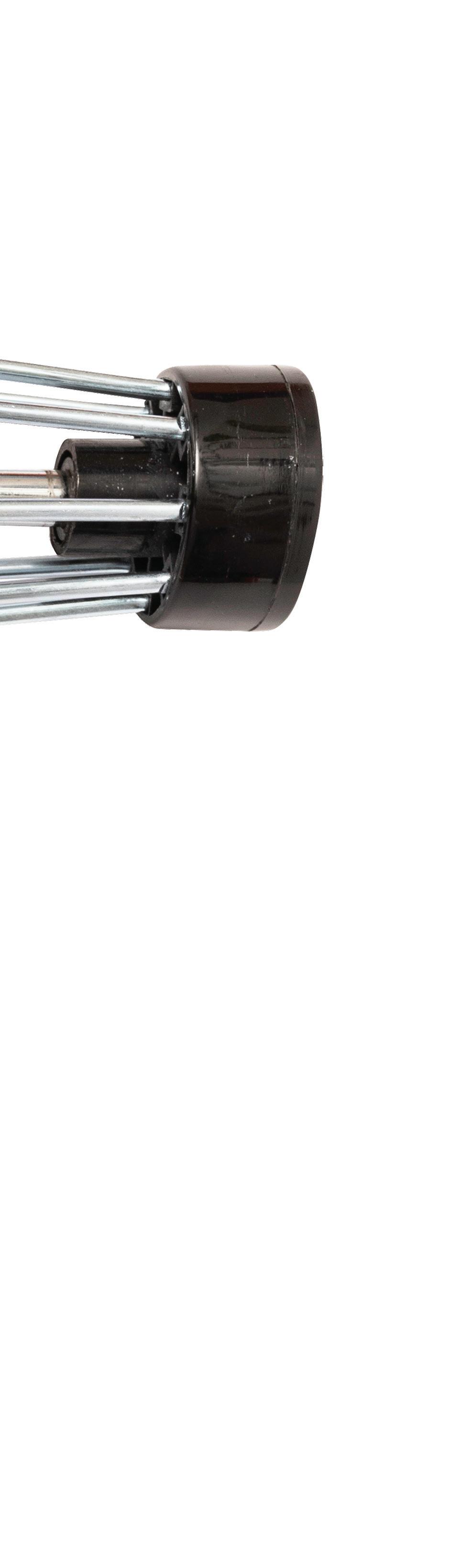 Cuatro aros de refuerzo ubicados en el extremo de la varilla del marco ayudan a evitar que la varilla gire dentro del mango para mayor control