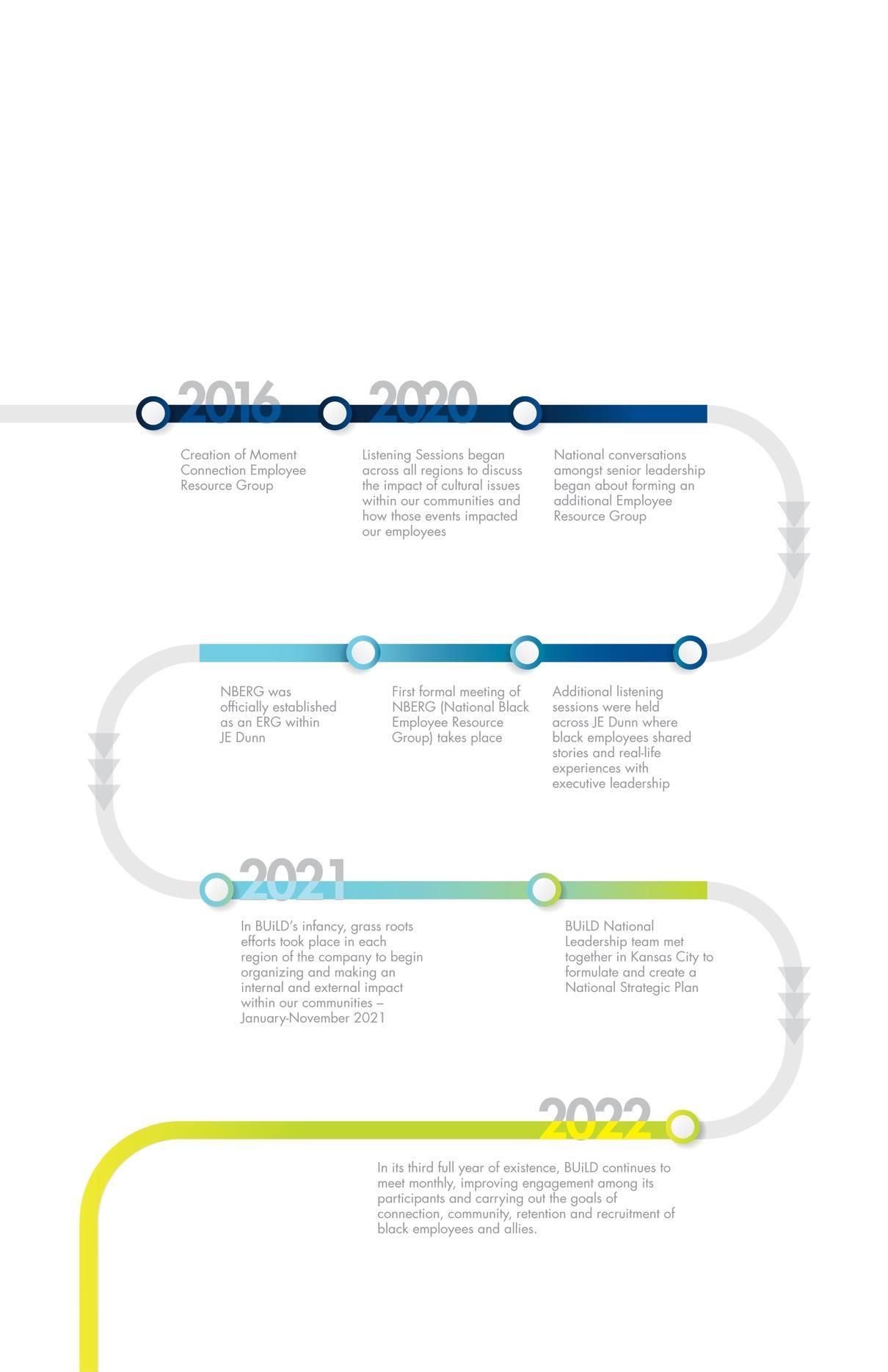 Prior to 2016, internal conversations in relation to how we as a company could provide additional support and networking to our minority employees, in particular, our women began. From those discussions led to the creation of our first Employee Resource Group, Moment Connection. As the unprecedented national events centered around race occurred in 2020, we began to have listening sessions across each of our regions to discuss the impact of those events on our employees. As a result of these listening sessions and in alignment with our Best People, Right Culture Key Strategic Initiative, Blacks United in Learning and Development (originally National Black Employee Resource Group) was created in 2020 in an effort to provide a platform for our black employees and allies to support one another. Our aim as an ERG is to create and curate spaces to have authentic and intentional conversations, experiences, and outreach opportunities. The goal is to provide a better space for us to work and live together, while honoring the diversity of our culture and experiences.