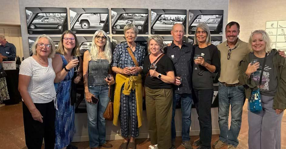 More than three decades of Dunn faculty met at Kam Jacoby's recent photography retrospective at Solvang's Elverjoj Museum. Pictured: Gabi Robbins, Amy Geriak, Cynthia Ward, Cornelia Cadwell, Karen Jensen, Kam Jacoby, Vickie Gill, Mark Geriak, and Stacey Adams. Present but not pictured: Dorothy Jardin.