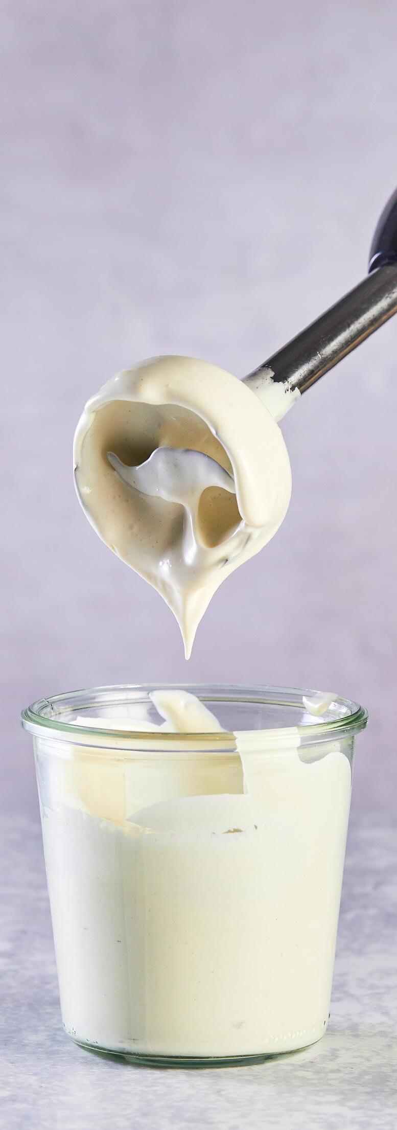 Add the vegetable oil and blitz with a hand blender until thick and creamy.