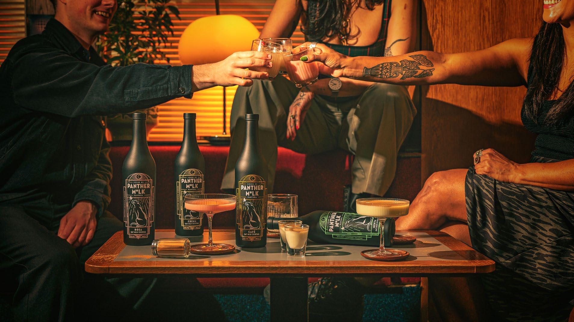 ferociously smooth oat milk cocktails inspired by legendary spanish cocktail ‘leche de pantera’. available in four flavours: crema, Rosa, café & MENTA