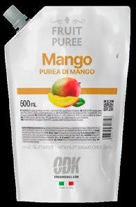 Taste the tropics with ODK Mango Purée – a premiumquality fruit purée made from 100% real fruit. Packed in a convenient, resealable pouch, this purée delivers the rich, sweet flavour and smooth texture of sun-ripened mangoes with no added sugar, artificial colours, or preservatives.