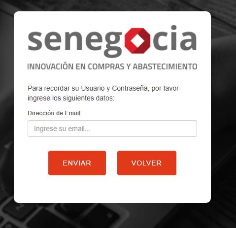 Paso 5: Ingrese su email y presione el botón enviar. Recibirá en el email ingresado la nueva contraseña, la cual recomendamos modifique una vez haga el ingreso en la plataforma.