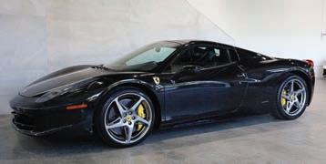 2013 FERRARI 458 SPIDER Nero Daytona Metallic exterior with Nero leather interior. 6,456 miles from new. Loaded with Carbon Fiber options, Daytona Seats, Frontend lifter and much more. VIN#192503