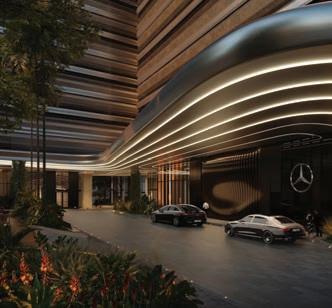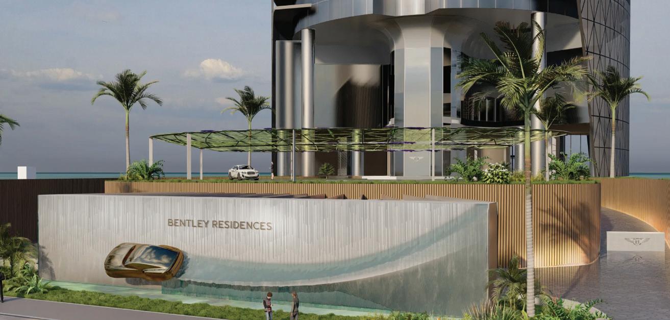 With automotive design going hand-in-hand with luxury architecture, it’s no surprise that the industry’s biggest names are diversifying their portfolios with exclusive real estate opportunities. The world was first introduced to automotiveinspired residences in 2018 with the announcement of the Porsche Design Tower in Miami, a $560 million tower consisting of 60 stories and 132 units, ranging in size from 3,415 to 6,684 sq. ft. Today, the list has grown to include renown manufacturers like Aston Martin, Bentley, Bugatti, Mercedes-Benz, Pagani, and Pininfarina, each breaking ground around the world to further embody the lifestyle of owning their supercars and hypercars.