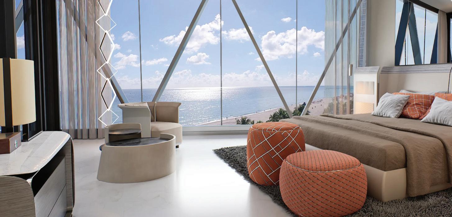 • Penthouse residences o ering up to 12,000 sq ft of luxury, 14 in-suite sky garages, and uninterrupted views of the Atlantic Ocean and Intracoastal.