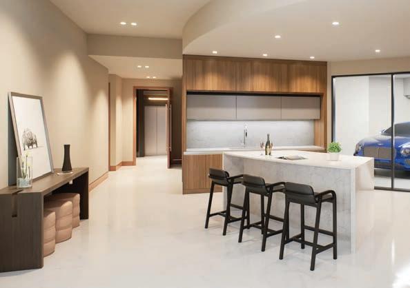 The refined elegance of Bentley-inspired interiors extends throughout, with automotive artistry even influencing the concealed motorized cabinetry in the kitchen and crystal etched door handles. A vehicle showroom view from your living space ensures your passion is always within sight. This development is not just a home; it’s a sanctuary for those who appreciate the finest things in life, both on the road and at home.