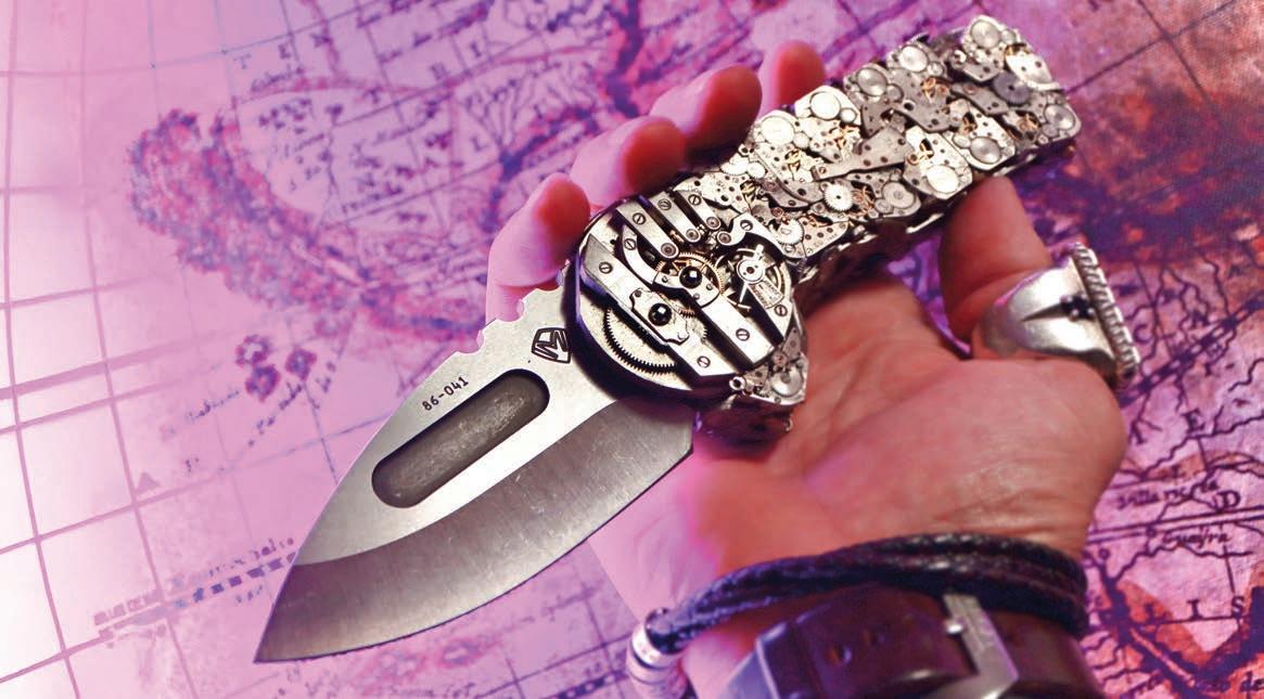 Each piece in the collection is a testament to the art of repurposing and reimagining. The Praetorian Time knife boasts pivot parts from a rare early 1900s pocket watch, seamlessly integrated into its design. Meanwhile, the Timestamp Dagger is crafted from iconic components, including genuine Rolex and Tag Heuer parts.