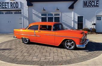 1955 Chevy 210 Custom | $139,900 Award winning ‘55 Chevy. Chromed and detailed 502 Ram Jet engine. Transmission 700R4, Art Morrison chassis, 9” Ford rear end, power Wilwood disc brakes, power steering, power windows, Vintage A/C. Finished in a PPG O’s Orange Pearl finish.