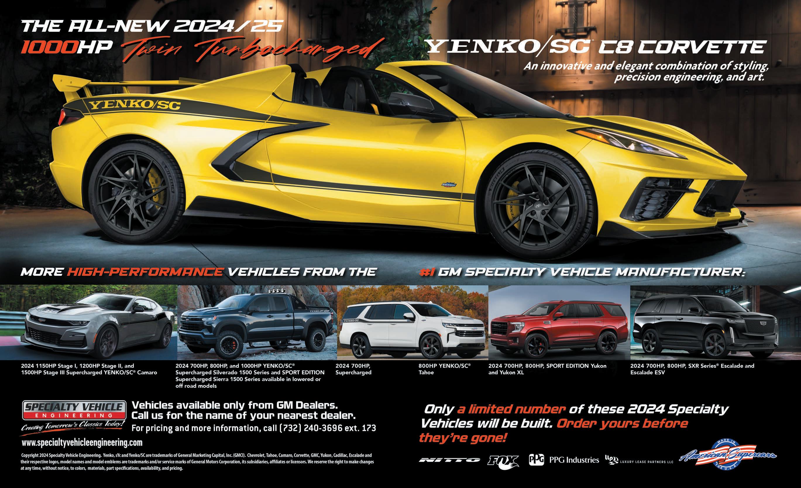 The new 2024 1000HP Twin Turbocharged YENKO/SC® C8 Corvette by Speciality Engineering Vehicles honors the iconic ZL-1 all-aluminum big-block engine. And we look at four other exciting reveals in the luxury automotive industry.