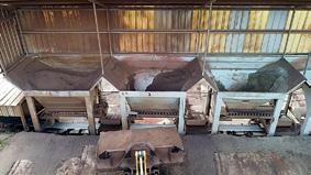 A medida que el resultado del proceso emerge de la correa transportadora final, se forma una montaña de suelo procesado para cuadro interior DuraEdge de color marrón rojizo. Este producto final, al igual que los ingredientes individuales, se somete a pruebas periódicas para garantizar que el material cumple las rigurosas especificaciones de cada producto DuraEdge.