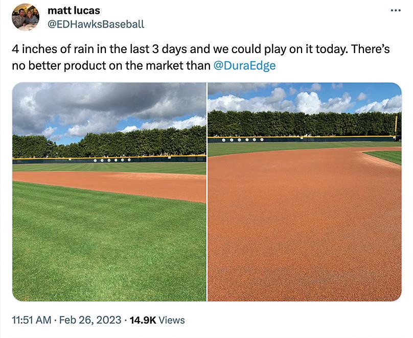 マイナーリーグの公式内野プレーイング・サーフェスとして、DuraEdgeは、当社の内野用ミック ス、トップドレッシング、マウンドクレーでこの指定にお応えできることを光栄に思っています。