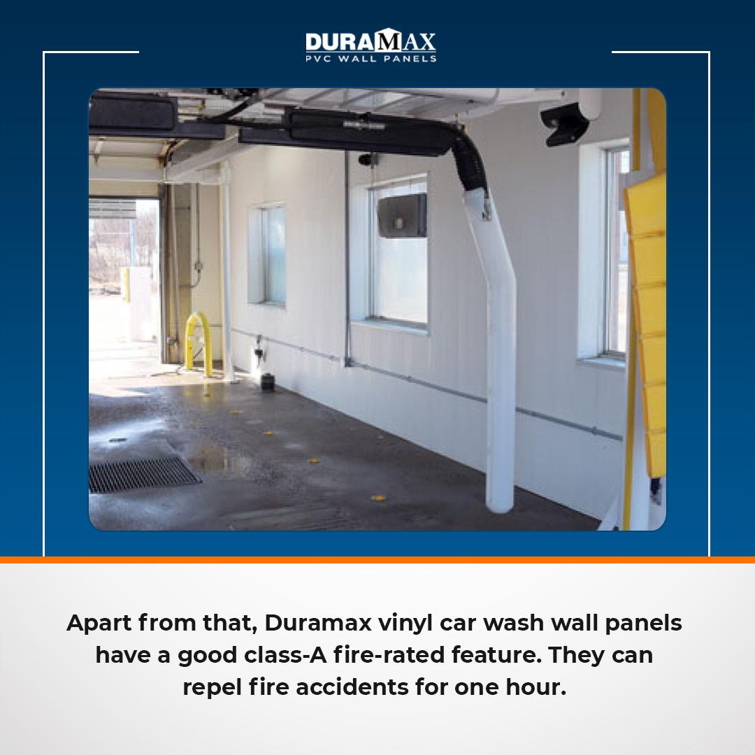 Duramax PVC panels provide exceptionally good vinyl water resistant paneling to the car wash garage. Duramax PVC Wall Panels do not have an in-built backer that does not absorb moisture easily.