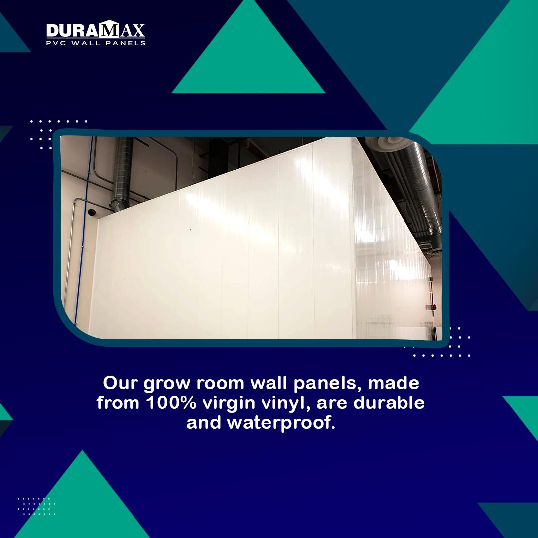 Welcome to Duramax. We provide 100% virgin grow room vinyl panels at factory costs. Our customized PVC grow room wall panels are waterproof, mold-free, and durable. The cannabis grow room walls require high-quality PVC materials to prevent moisture penetration and mold growth. Stop installing grow room FRP panels and get high-quality PVC wall material from Duramax PVC Panels. We ship the panels in 2 weeks. Request a quote now.