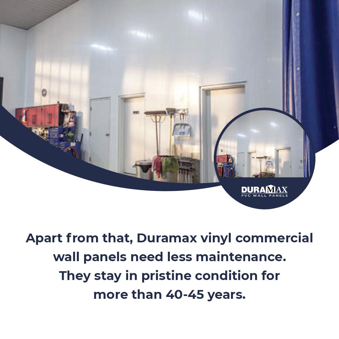 We have been manufacturing FDA-compliant and CFIA-certified vinyl garage wall panels for the last 40 years. Duramax vinyl panels have a good shelf-life of around 40-45 years and do not undergo frequent replacements.