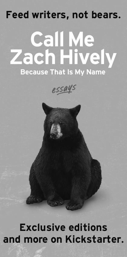 Then someone had the bright idea to rework those adventures into a book. That someone was me. And I’d like to introduce you to my forthcoming book, now up for grabs on Kickstarter: “Call Me Zach Hively Because That Is My Name.”