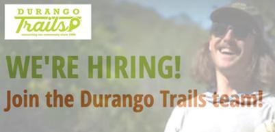 Are you passionate about trails and the outdoors? Are you dedicated, hard-working and driven? Durango Trails is hiring for the Trail Crew. Hours range from 10 hours a week to 30 depending availability and skill. Please submit your PDF resume now to: https://www.durangotrails.org/ join-our-team/
