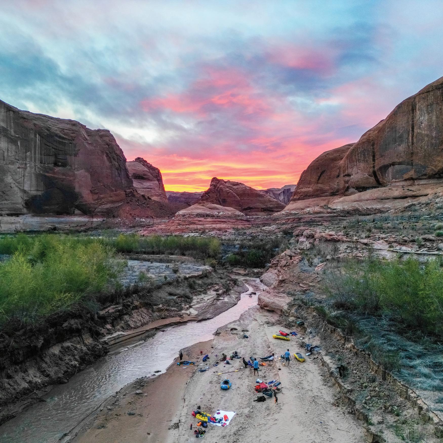 Packrafters settle down at camp for the night during a recent expedition on the Escalante River to its confluence with Lake Powell./ Photo by Andy High