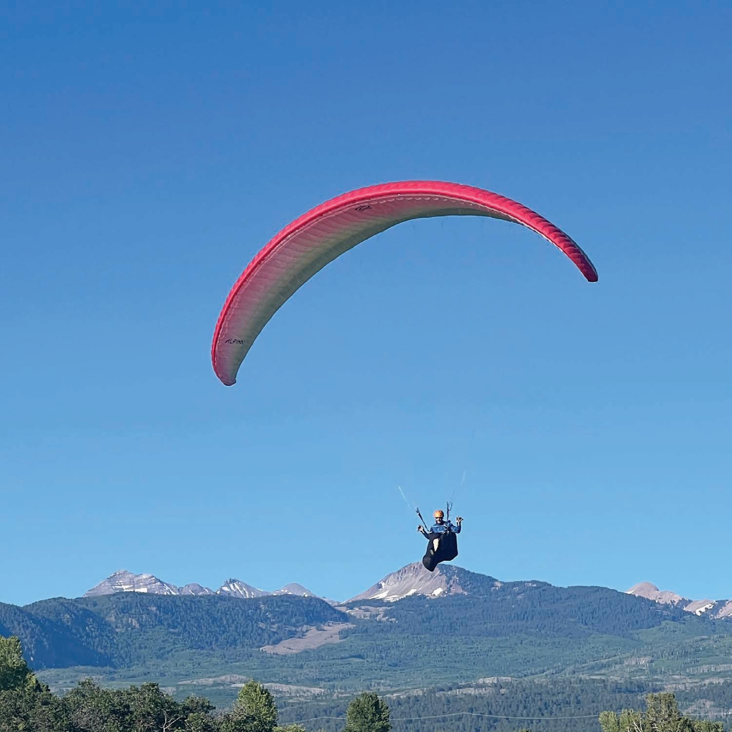 A paraglider provides some in-between-sets entertainment for the crowd at last weekend’s “Nordfest” in Mancos./ Photo by Missy Votel