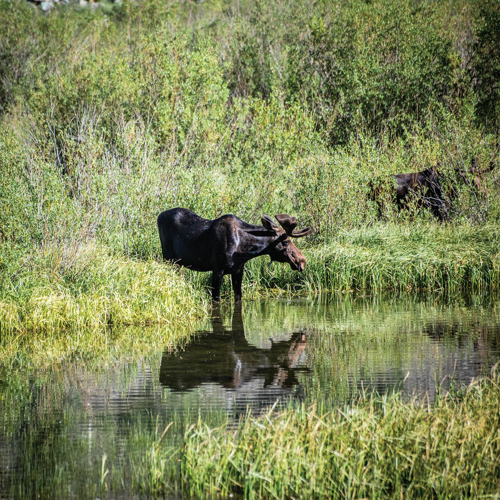 A member of the local moose population tries to cool off in a lake near Silverton./ Photo by Andy High
