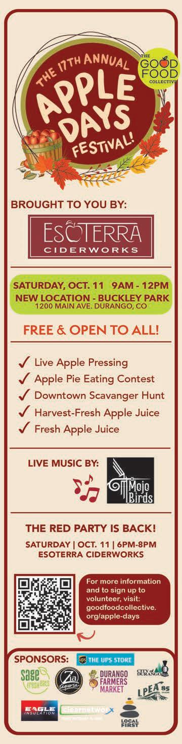 The Good Food Collective is on a mission to pick apples for the Apple Days Festival on Oct. 11. Come shake trees and bring your friends! For dates, info. or to sign up, go to: www.goodfoodcollective .org/apple-days