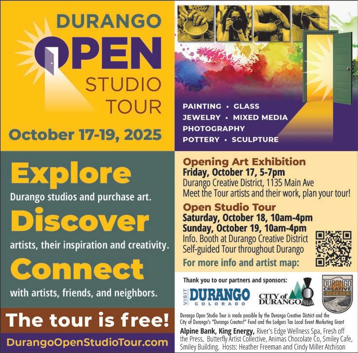 “Nature’s Tapestry in Plein Air,” juried exhibit thru Oct. 25, 5-7 p.m., Durango Arts Center, 802 E. 2nd Ave.