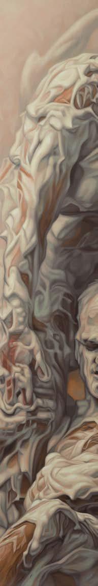L’exposition Nos corps fluides de Rosalie Gamache ouvre sur un univers pictural où s’unissent l’informe et le réalisme. Revisitant les codes historiques du nu dans une perspective queer, l’artiste représente des corps dissimulés par une matière blanche qui évoque la peinture. S’effacent alors les représentations stéréotypées des sujets et l’appartenance à un genre au profit d’une nouvelle imagerie des rapports intersubjectifs, s’exprimant dans le toucher, la fluidité et l’entrelacement. Dans la matière picturale, les frontières entre les corps sont brouillées, les identités oscillent; l’artiste propose une mise en scène de l’intimité où la sensualité de la peinture rencontre celle des liens affectifs.