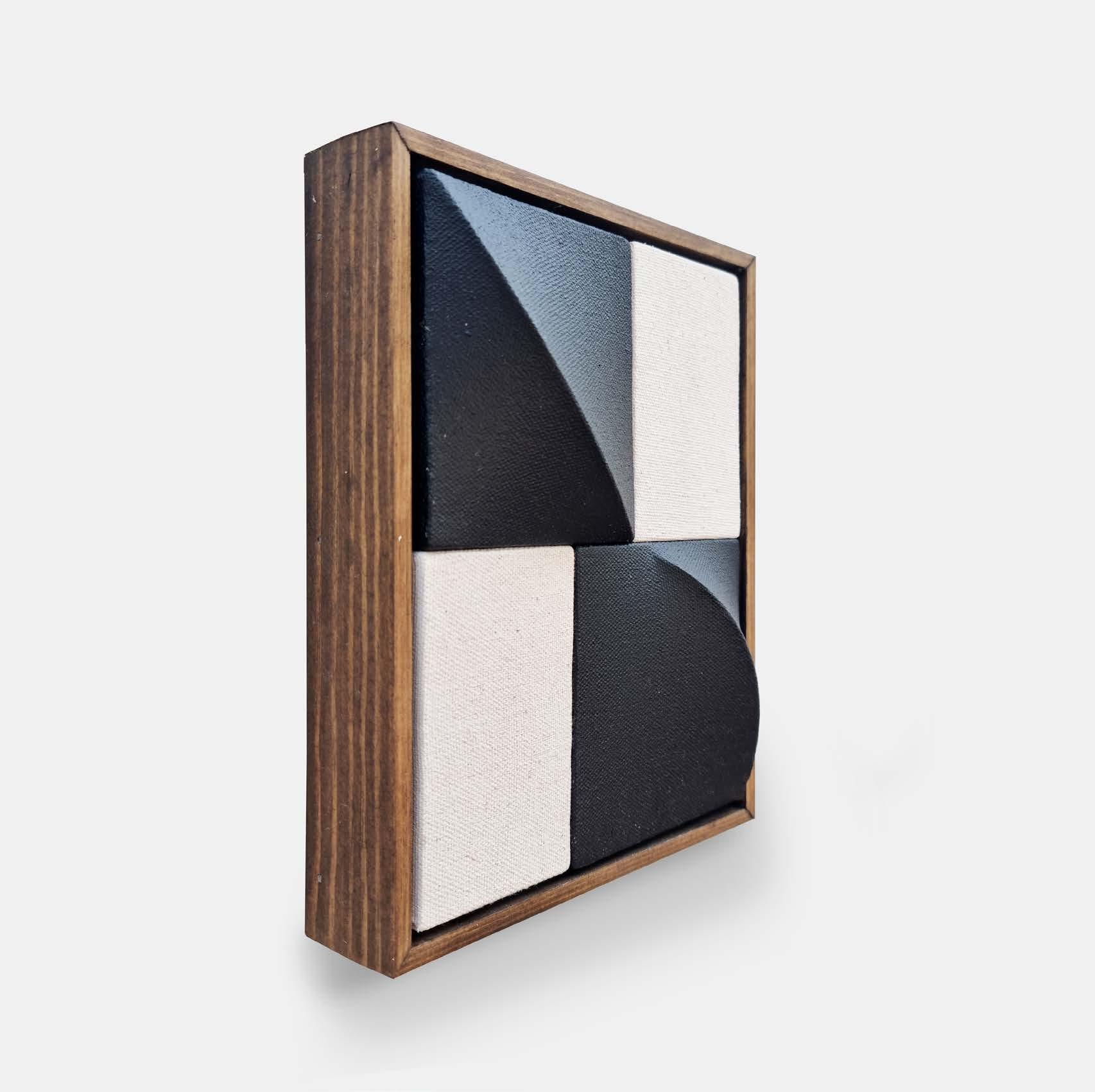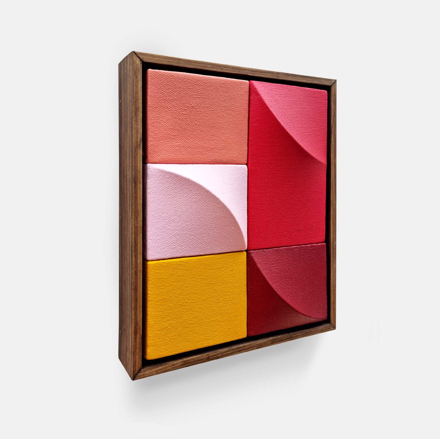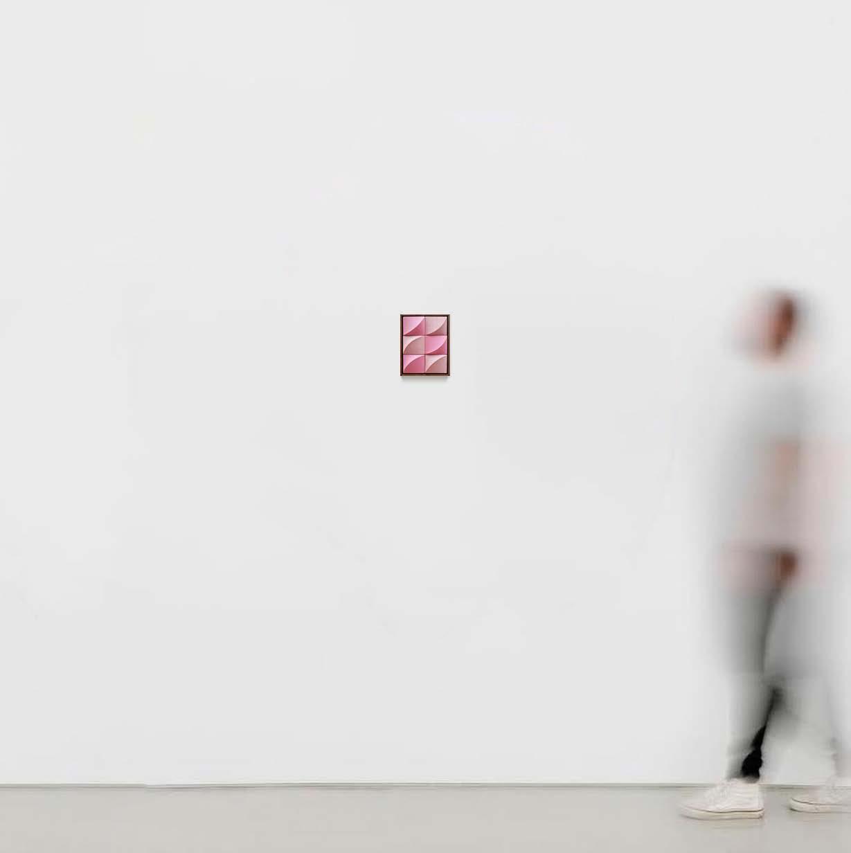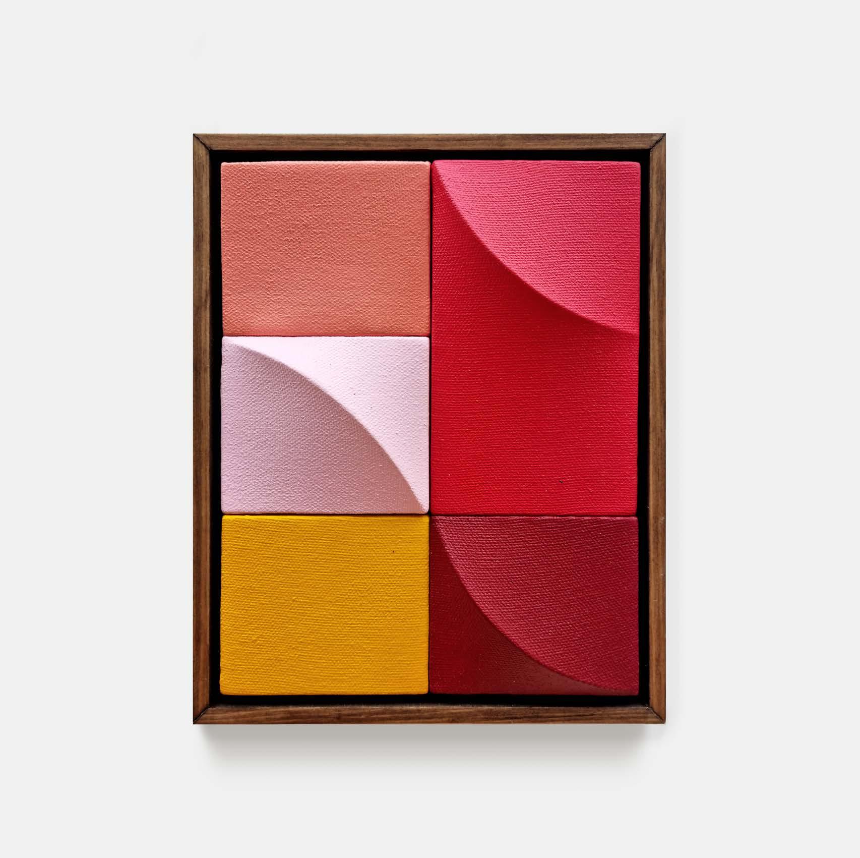 In Patterson’s work light completes the artwork and at the same time transforms it. One can better understand Patterson’s practice by perceiving light more like sound. In the same way you make an instrument to produce a specific sound, Patterson’s artworks are instruments that play the light. Describing his artistic process, Patterson reflects that, “building the frame is like writing the score and painting is like playing for the first time.” Like the keys of a piano, the three-dimensional extensions of the canvas act as tools for Patterson to play with light, offering infinite possibilities and variations of shadow and tonality. Composing his artworks like a musical score, Patterson’s architectures become instruments that can be heard playing solid rhythms of colour to the beat of light and shadow. Patterson’s work is experiential. Through his gesture the work becomes an object, an installation – it acquires a certain presence that involves the spectator as they share the same space.