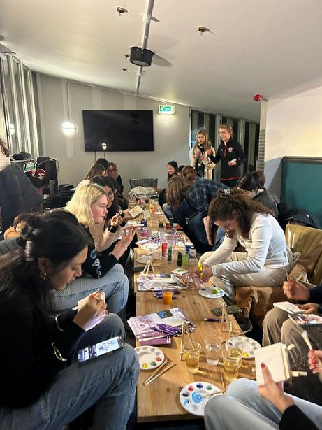 On12thFebruary2024,wehostedtheâGalentinesPaintnSipâeventwhereinstudentssippedalcoholicandnonalcoholicbeveragesandpaintedoncanvas,whilstsimultaneouslyinteractingwithmembersfromtheDurham HaloProject ThisallowedstudentstolearnmoreabouttheHaloProject,andtheworkthatwedo,inaninformal setting Theeventwasveryrelaxing,amuch-neededchangefromthehectic,career-orientedlivesofstudents Students painted a range of things- flowers, animals, and sceneries, which allowed them to showcase their artisticprowess Attheendofthenight,thewinnerwasdecidedandawardedbytheteam