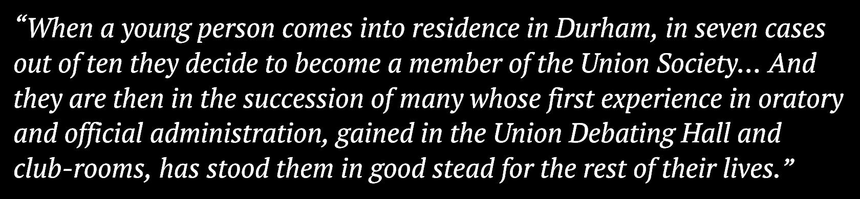 The Durham Union Society is Durham’s oldest and largest student society. Founded in 1842, the Union plays a unique role in the collegiate system of Durham University. It brings together students from across the university in a way no other student society can.