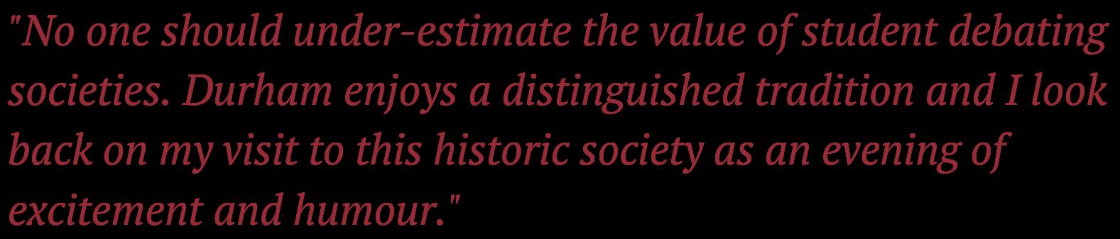 "I came into Durham having never debated competitively before, and since then thanks to the training and opportunities on offer represented Durham in competitions across the country and across Europe, and have made friends for life both in Durham and from across the world"