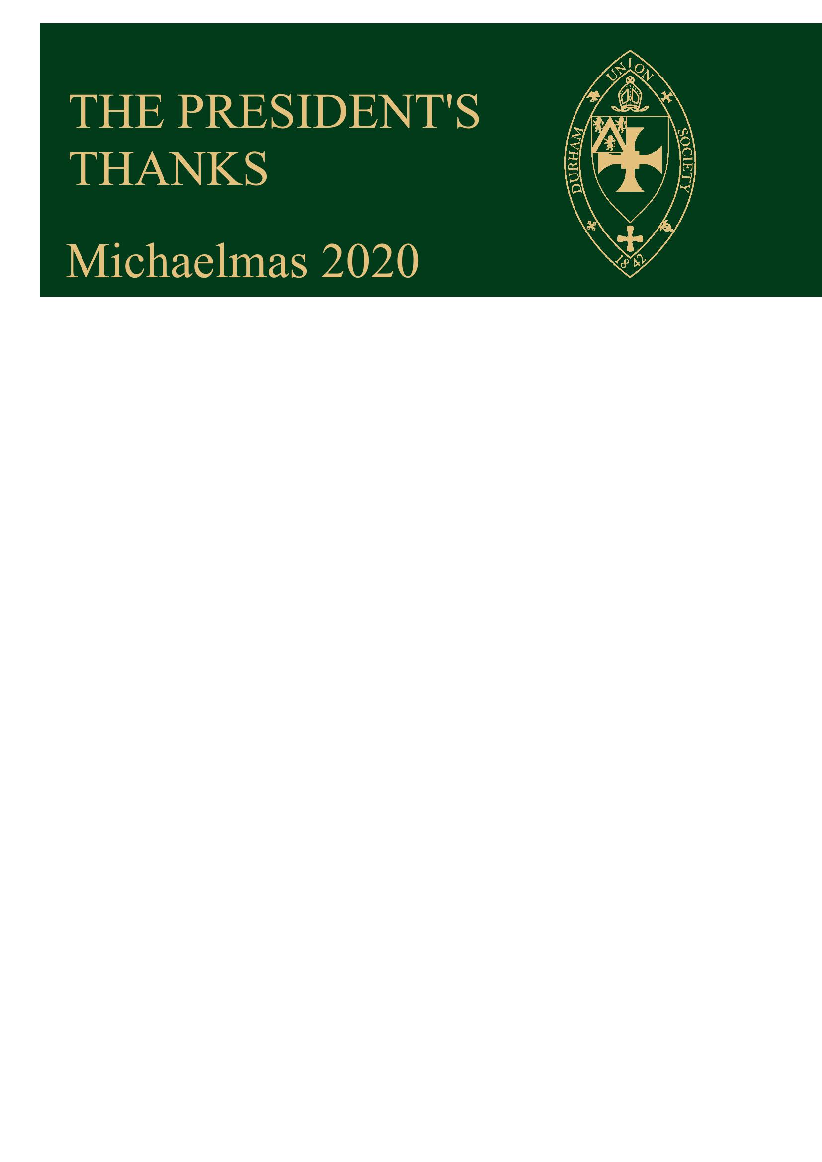 The Michaelmas Presidentâs Committee have been instrumental towards sorting the speakers and debates for this term. Special mentions to Chris for his connections, Matthewâs persistence to get high-profile speakers and Speakers Secretary Sophieâs cool ideas to keep us fresh.