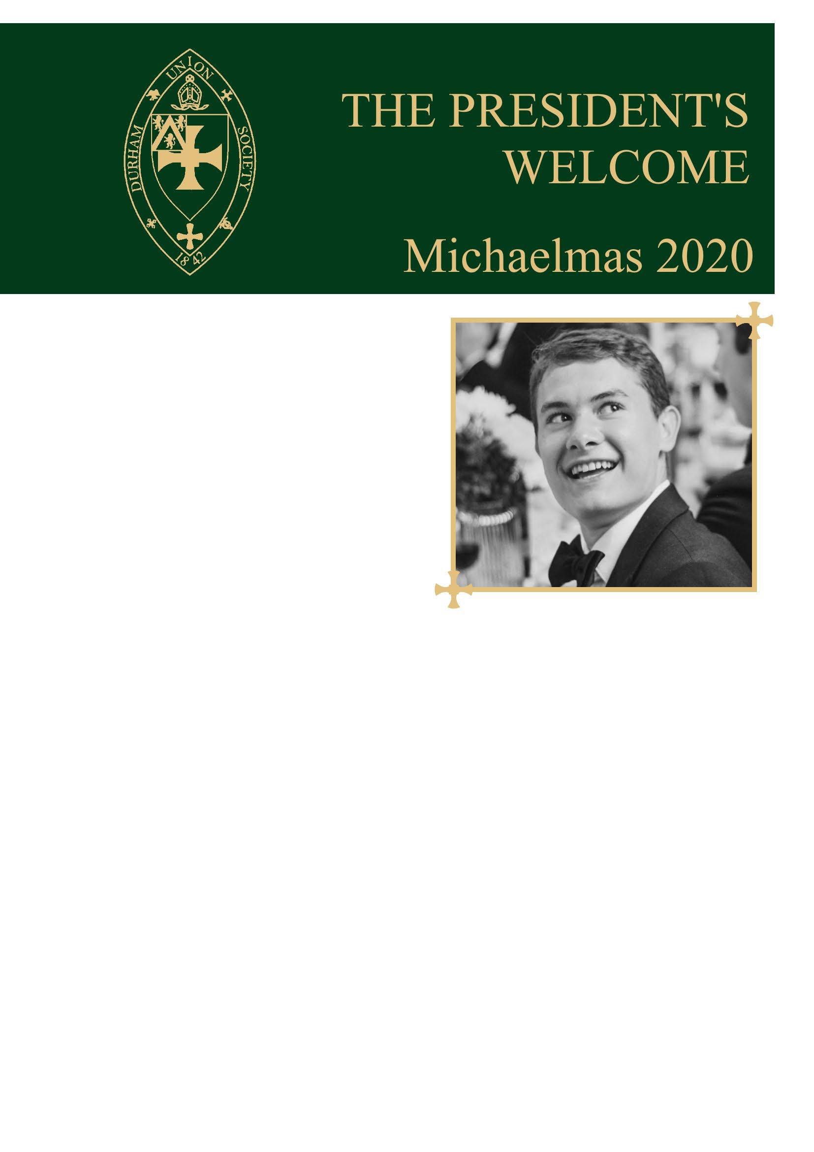 I mean it when I say that the Unionâs officer corps has never been stronger and more dedicated than in these tough times. The Union is 175 years old â itâs seen world wars, pandemics and economic crises. For those whoâve stuck by the Union, the fruits of our efforts in an exciting upcoming term will be the ultimate reward. Iâm humbled to serve as President for Michaelmas 2020 and I look forward to seeing as many as possible in person.