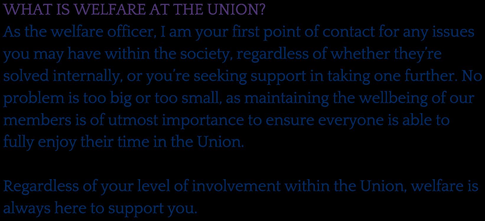 They say trouble comes in threes: our Garden of Eden Summer Ball, Garden Party, and infamous boat parties are not to be missed! Member welfare has been at the heart of my vision for this term. To help de-stress during exam season, we'll be hosting a puppy therapy session before exams and a paint and sip event once they’re over. Plus, we ’ re launching welfare drop-in sessions to support you throughout this busy time.