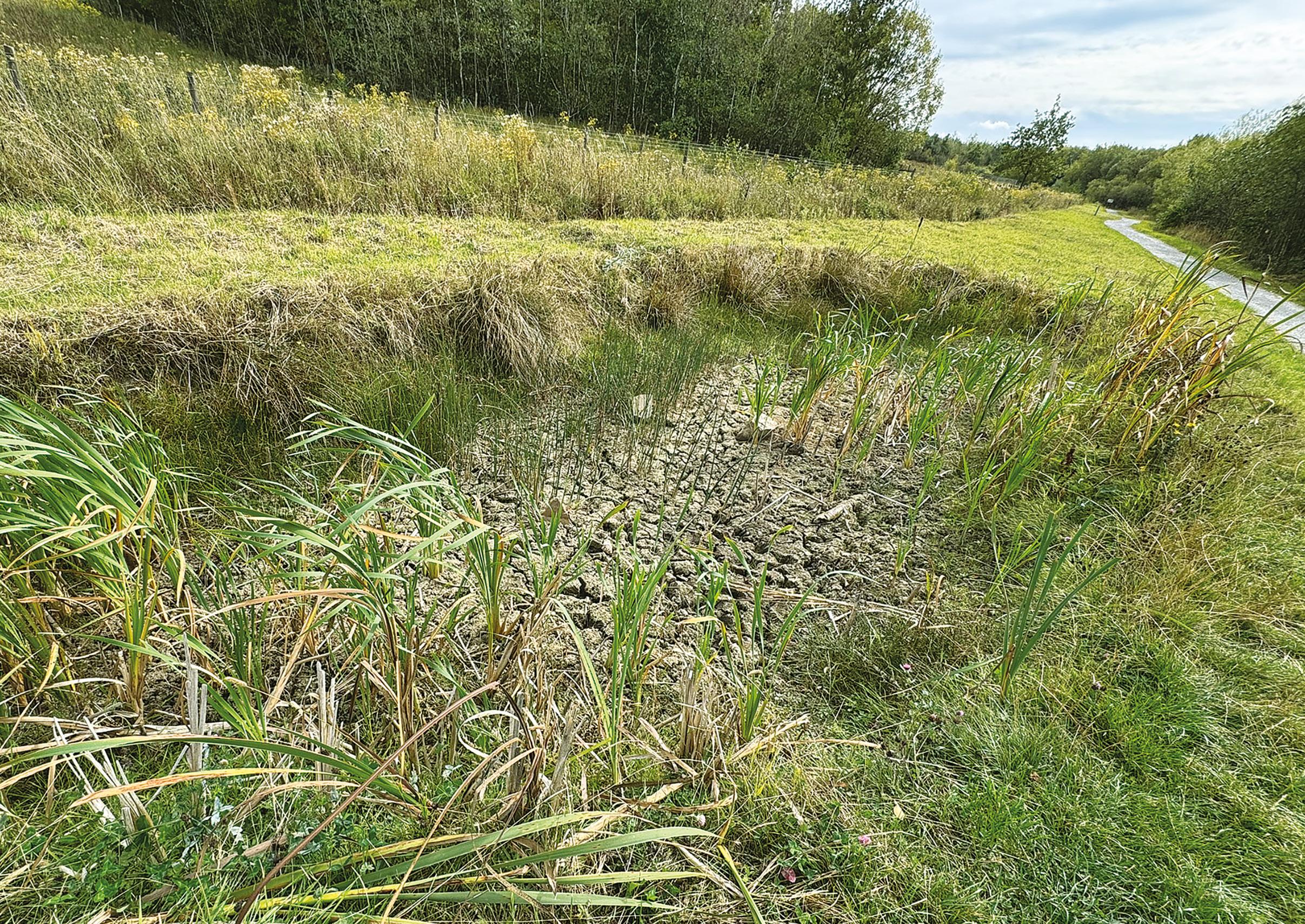 We are feeling the impact at Durham Wildlife Trust sites too. From Tees to Tyne, we have some truly unique habitats, but many are showing signs that the changing weather and extreme events are having an effect. With the lack of rainfall this year, wetlands have been one of the most obviously affected habitats, with low water levels and ponds drying out across many sites. For example, at Rainton Meadows pond levels have been extremely low, while the Gateshead sites of Lamesley Pastures, Shibdon Meadow, and Shibdon Pond have had very limited water on site, with some of the shallower scrapes drying out completely. With extended periods of drought, marginal vegetation also starts to encroach, trapping more silt and leading to further drying out of habitats.