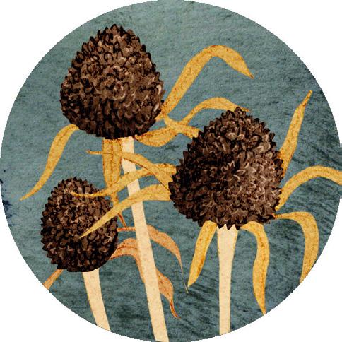 Their spiky seed heads stand tall through winter, offering shelter for insects and a vital food source for hungry finches and other seed-loving birds.